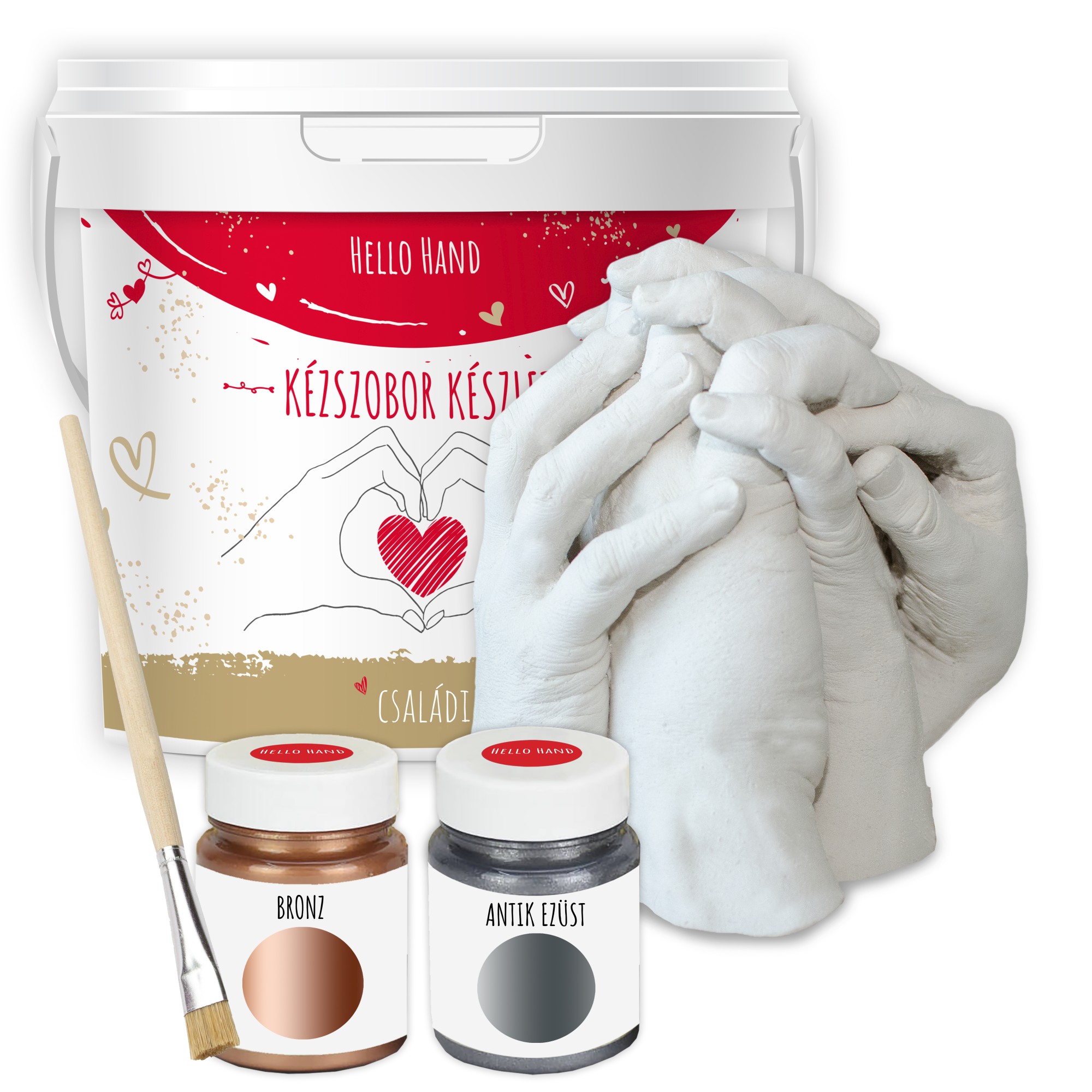 Ezen készlet tartalmával 1 db kézszobor készíthető el 3-4 felnőtt vagy gyermek emberi kézről.